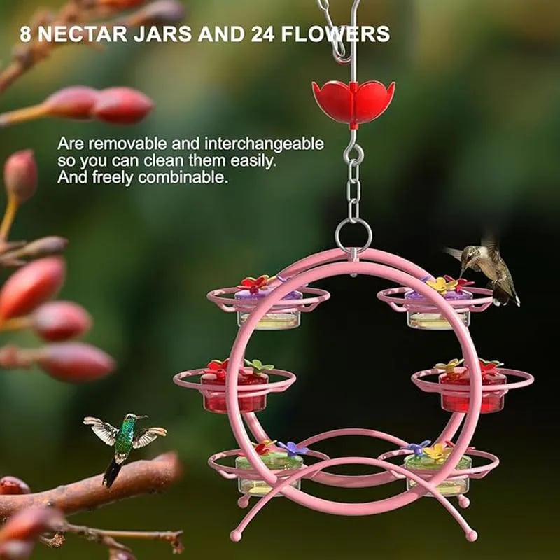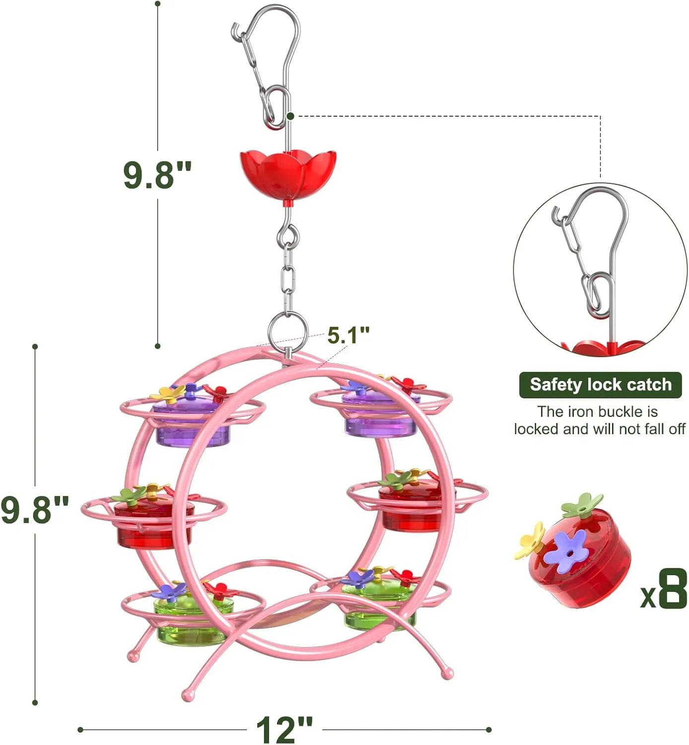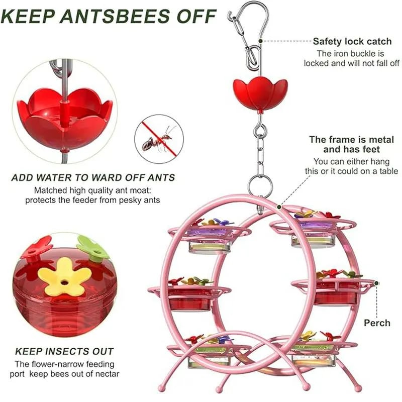 UNIQUE MULTI-LAYER SESIGN:The unique multi-layer structure provides With 6 nectar jars and 18 feeding ports, allowing multiple hummingbirds to feed simultaneously. This effectively reduces territorial disputes and enhances hummingbird satisfaction, turning your garden into a hummingbird paradise.
